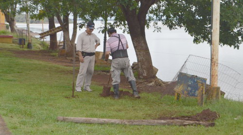 Una cuadrilla de personal perteneciente a la Secretaría de Obras Públicas, trabaja en la zona de la costanera de Paso de los Libres, con el objetivo de construir un vallado perimetral de contención.