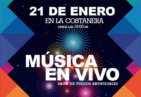 El domingo se realizará en la costanera local un show de música con las bandas La Norteña y La Guardería, indicaron desde la municipalidad local y se hizo hincapié en que brindarán un show de fuegos artificiales sin estruendo para cuidar a mascotas y niños autistas, por la sensibilidad a altos decibeles de sonido.