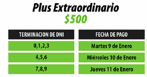 Entre el 9 y 11 de enero, provincia para el plus extraordinario de $500