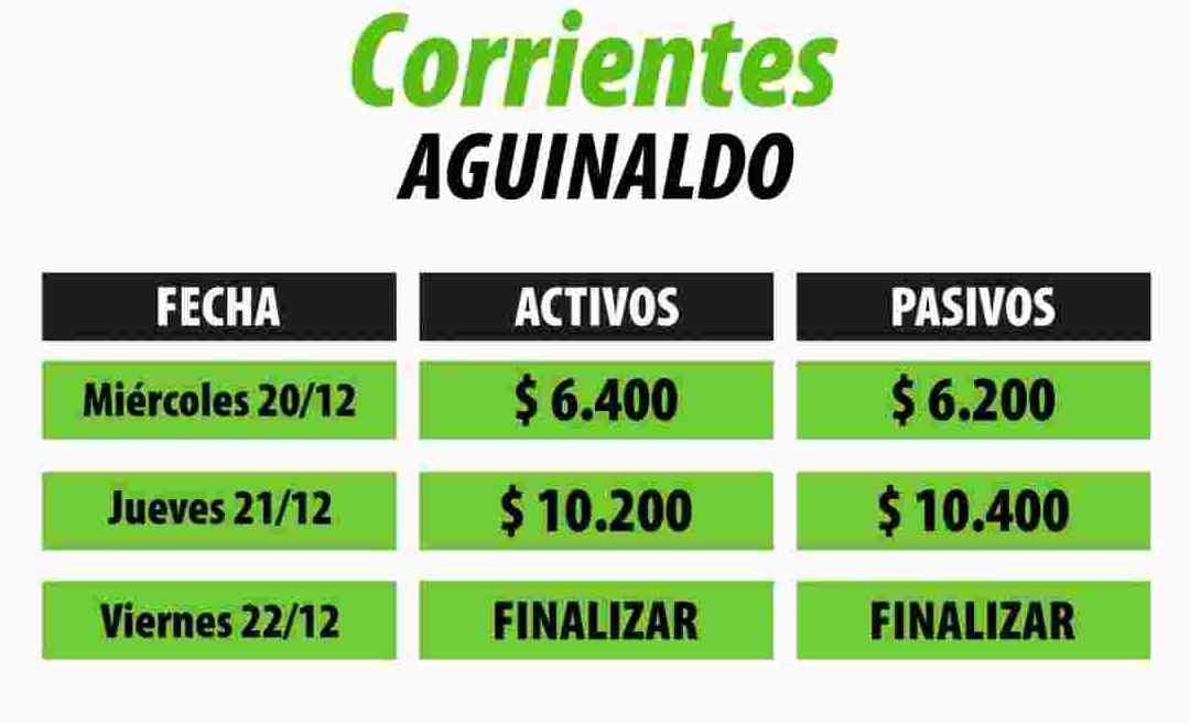 El miércoles 20 de diciembre, cobrarán activos hasta 6.400 pesos y jubilados hasta 6.200 pesos; el jueves 21 percibirán su SAC los agentes en actividad hasta 10.200 pesos y el sector pasivo hasta 10.400 pesos; el viernes 22 culminará el pago para ambos sectores.