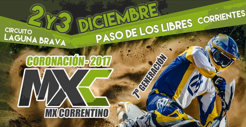 Sábado 2 y domingo 3 de diciembre, se realizará la Coronación 2017 del MX Correntino, en el “Circuito Laguna Brava” ubicado en el Parque Municipal de Turismo de Paso de los Libres. Se trata de una competencia de motocross que espera recibir a pilotos locales y regionales.