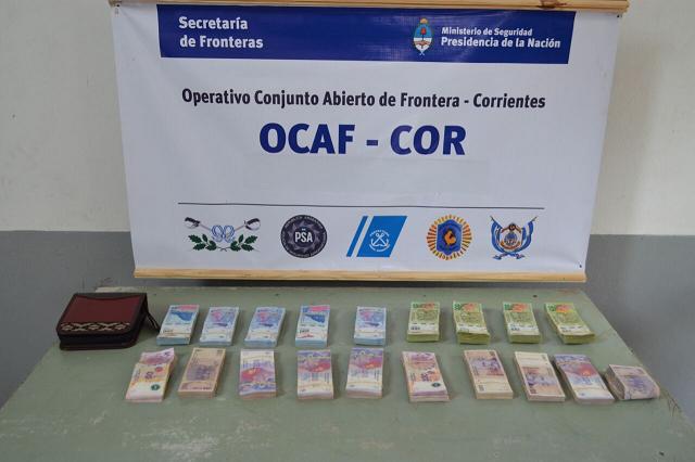 EL DINERO ERA TRASLADADO EN UN VEHÍCULO MARCA VOLKSWAGEN, MODELO VENTO, PROCEDENTE DE LA PROVINCIA DE MISIONES, CON DESTINO A LA CIUDAD DE BUENOS AIRES. HAY UN DETENIDO.DE INMEDIATO SE INFORMÓ AL JUZGADO FEDERAL DE PASO DE LOS LIBRES, QUIEN ORIENTÓ LA DETENCIÓN DEL CIUDADANO INVOLUCRADO