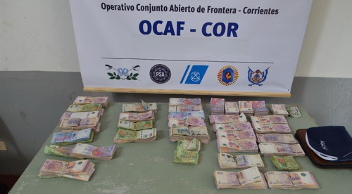 Gendarmería Nacional secuestró en inmediaciones de la localidad de Amado Bonpland un automóvil y casi 500.000 pesos en efectivo en moneda nacional y extranjera de dudosa procedencia. Los ocupantes del rodado quedaron en libertad.