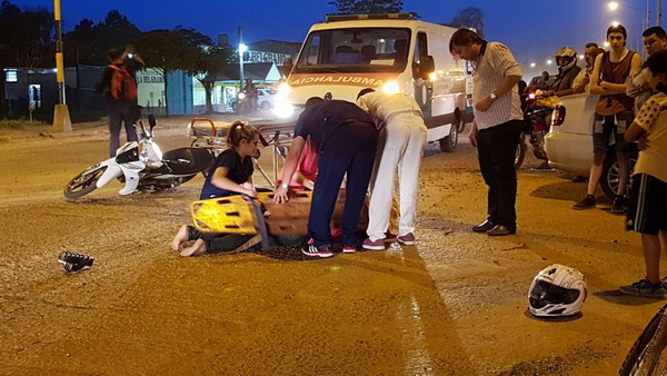 En horas de la tarde de este martes, una mujer a bordo de una motocicleta de 110 cilindradas, por razones que se desconocen, protagonizó un accidente en el que está además involucrado un automóvil, de marca Fiat Siena. Ocurrió en el semáforo ubicado en la intersección de ruta acceso al aeropuerto y Newbery.
