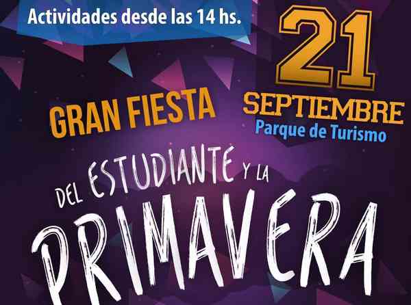 La Gran Fiesta del Estudiante y la bienvenida de la “Primavera” propuesta por la Dirección de Juventud de la Municipalidad de Paso de los Libres se concretará el jueves 21 de septiembre, a partir de las 14 horas, en el Parque Municipal de Turismo. Evento libre y gratuito.