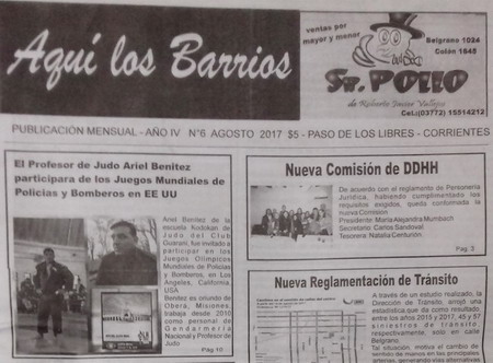 Proponemos a nuestros lectores, los temas que aparecen en la portada impresa de la publicación mensual “Aquí los Barrios”, que aborda diversos temas de interés general. Corresponde al mes de Agosto y presenta temas de juventud, ciudad, sociedad y deportes.