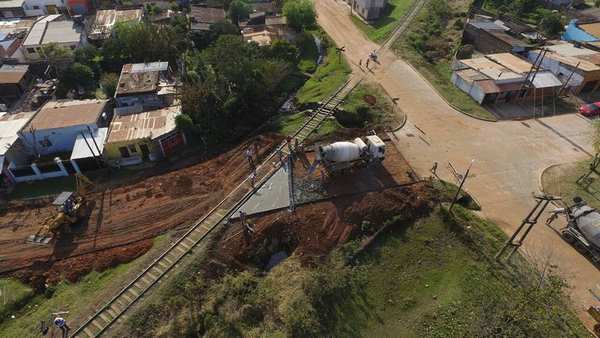 Obreros trabajan en el paso a nivel de J.F. Velazco y M. Melogno