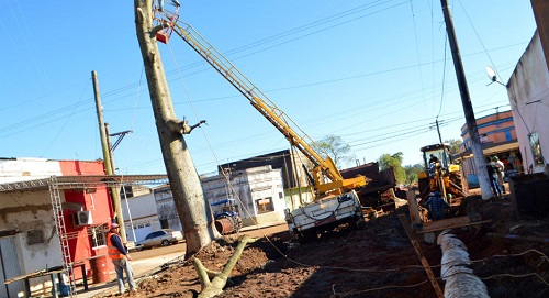 Sobre calle Leandro Além (intersección con calle Belgrano) avanzan las tareas de desagüe, construcción de cámaras de alcantarillas (de 8 mts. x 1,20 mts.) y colocación de caños de 6 pulgadas.