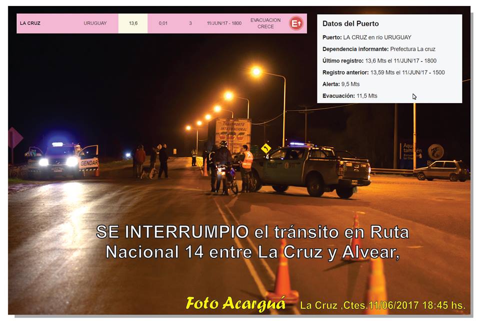 Así lo ha informado el municipio de La Cruz, a consecuencia de la crecida del Río Uruguay y además comunicaron que a las 7 horas del lunes se reunirán nuevamente para evaluar la continuidad del corte de tránsito.