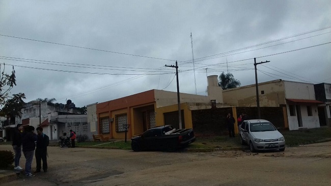 Un fuerte choque, del que fueron protagonistas dos vehículos, se produjo poco antes del mediodía en la esquina de calles Sitja Nin y 25 de Mayo. Según las primeras versiones, una persona fue trasladada por la unidad de rescate de bomberos al nosocomio con lesiones que no revestirían gravedad.