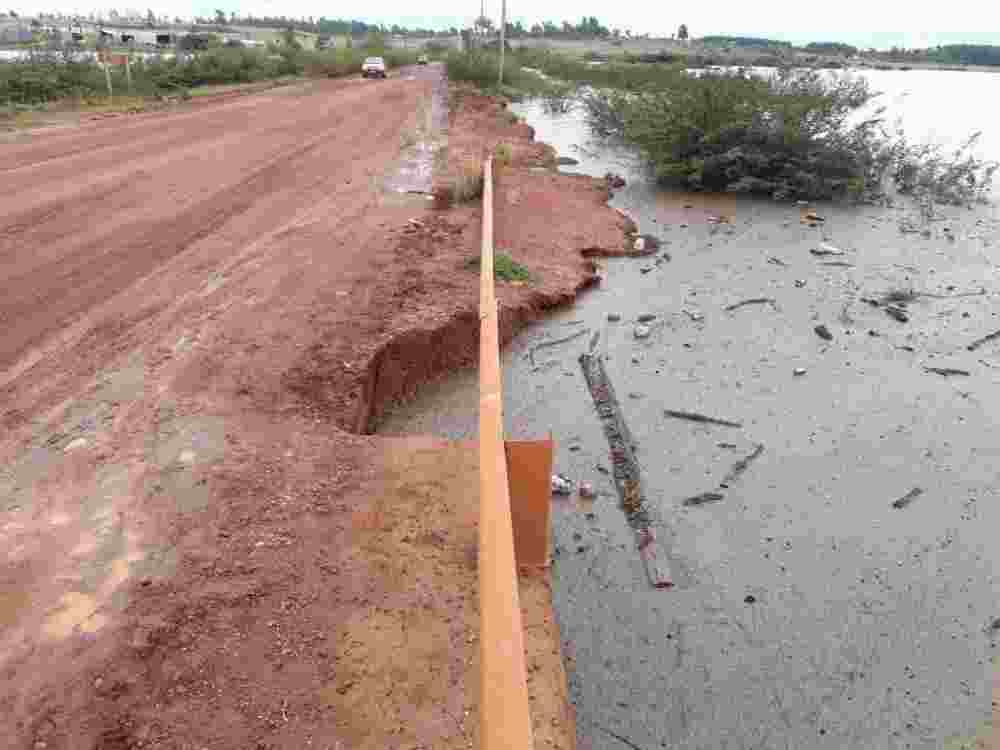 Una de las juntas de uno de los puentes de la Ruta 24, en cercanías de Perugorría, comenzó a abrirse debido al intenso paso de camiones por el corte en la Ruta Nacional 123. La policía está en el lugar trabajando para que los autos, camiones y colectivos pasen a baja velocidad.