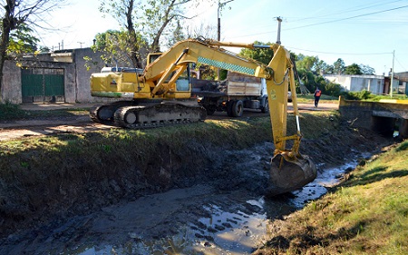 La Municipalidad de Paso de los Libres continúa con el trabajo de limpieza de los drenajes pluviales en la zona de los barrios de INVICO (frente al 508 Viviendas) y barrio Monte Verde.