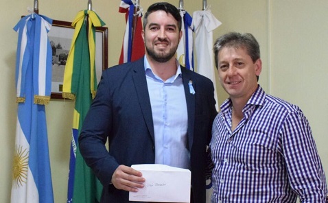 El Ministro de Coordinación y Planificación de la Provincia de Corrientes, Dr. Eduardo Vischi, realizó este jueves la entrega de un subsidio al Presidente de la Liga Libreña de Fútbol, Wilfredo Collinet, para reparaciones en el estadio Agustín Faraldo.