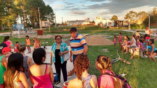 El intendente municipal, Raúl Tarabini, acompañó ayer a los vecinos del barrio “Santa Bárbara”, beneficiarios del Programa Nacional “Hábitat y Desarrollo Humano”, que se reunieron en la plaza Arturo Frondizi. Acompañaron al jefe Comunal; la presidente del Concejo Deliberante, Mónica De Gaetano; la Ing. Dora Báez, responsable del programa; funcionarios, capacitadores y profesores de Educación Física.