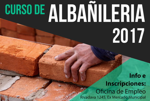 Desde la Oficina de Empleo se informa a la comunidad que se encuentra abierta las inscripciones para el “Curso de Albañilería” a dictarse de forma gratuita. Los interesados deberán pasar por la Oficina de Empleo, sito en Rivadavia 1245 (ex mercado Municipal).