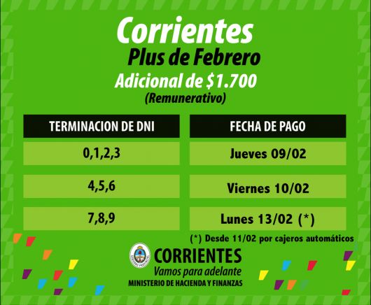 Este jueves 9 percibirán el adicional los DNI terminados en 0, 1, 2 y 3. Continuará el viernes con los finalizados en 4, 5 y 6. Enrique Vaz Torres, confirmó vía Twitter que se abonará el plus a empleados de la administración pública provincial.