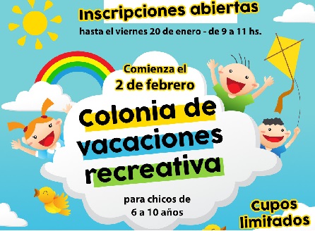 Hasta el viernes 20 se inscribirán para las Colonias de Vacaciones Recreativas