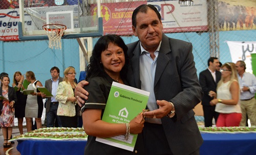 El gobernador Colombi encabezó este lunes un acto en el cual el Gobierno provincial entregó 100 viviendas a sus adjudicatarios. Las unidades cuentan con conexión domiciliaria a la red de gas natural que llega a la localidad desde el año pasado y son las primeras casas entregadas por la Provincia en contar con este servicio.
