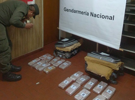 Este jueves, personal del Escuadrón 7 “Paso de los Libres" en el pejae Piedritas, sobre Ruta 14, altura km 363, procedieron a verificar un transporte público de pasajeros que partió desde la ciudad de Roque Sanz Peña, Chaco con destino a Florencio Varela (Buenos Aires), transportando dos valijas en las cuales detectaron que contenían mercaderías en infracción a la ley 23.737 .