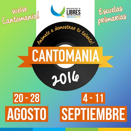 La Dirección de Juventud de la Municipalidad de Paso de los Libres, comunica a los establecimientos educativos que se encuentra abierta la inscripción para el concurso de canto, denominado Cantomanía en su edición 2016 para Escuelas Primarias.